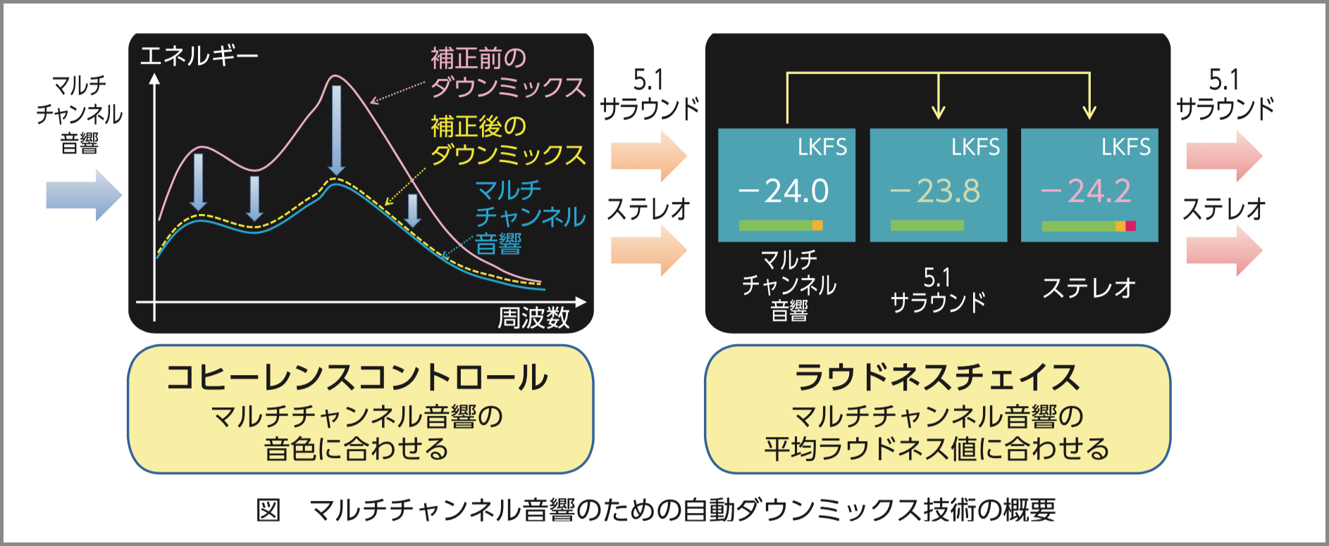 ・ダウンミックス時の平均ラウドネス値補正技術(ラウドネスチェイス)