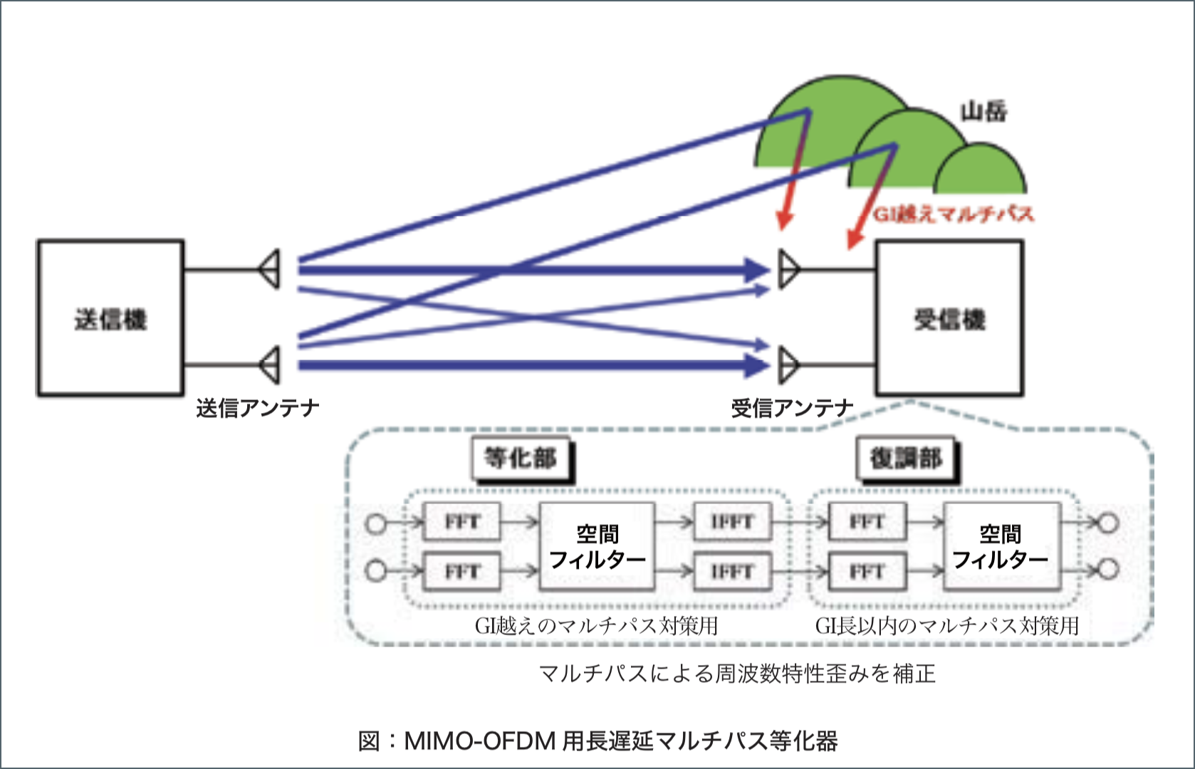 (3)地上デジタル放送用として実用実績のある長遅延マルチパス等化技術を、MIMO 方式に拡したものです。