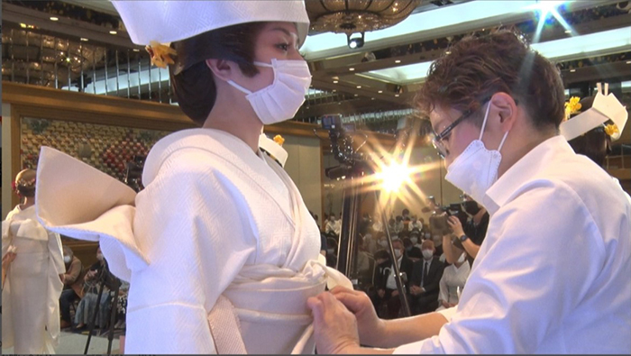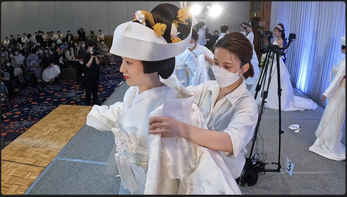 Bridal beauticians show their mastery of traditional Japanese wedding attire, including wigs and white kimono, at this annual competition. They must swiftly and precisely complete almost 400 steps to create the traditional bridal look. Contestants must dress and put make-up on their models—but personal conversation is strictly prohibited. What are the secret techniques for tying an obi belt or layering garments properly? Join us for this stunning display of skill!