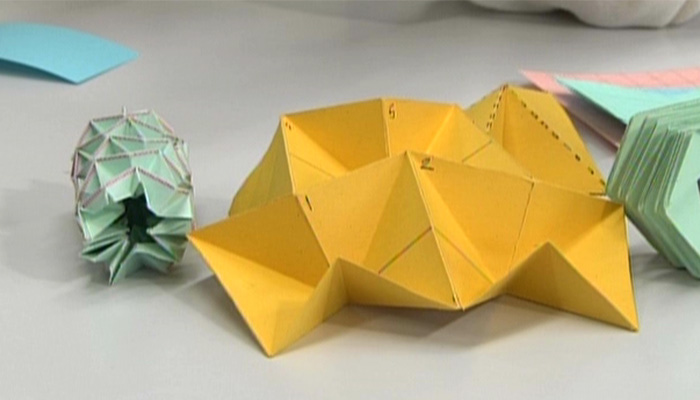 Origami is now being applied to cutting edge technologies. This program features the possibilities traditional Japanese paper folding offer such as using origami structures in the design of auto parts that effectively absorb the energy of collision.