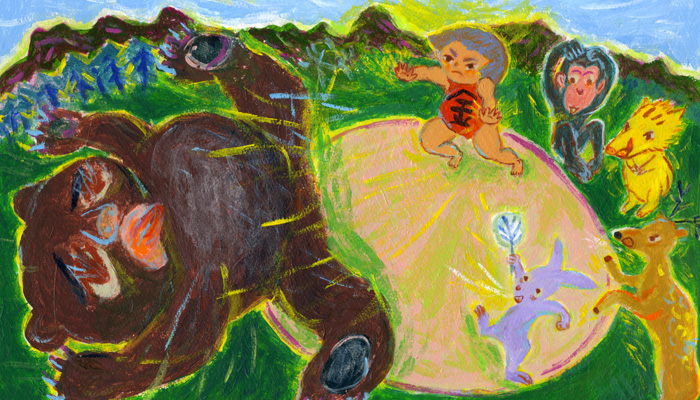 A boy named Kintaro is stronger than anyone else. When he wrestles, he can even beat a bear. But Kintaro is also gentle-hearted and helpful to his forest animal friends. A lord witnesses Kintaro’s good deeds and asks him to serve him as a samurai in the Capital, where he performs many heroic feats.