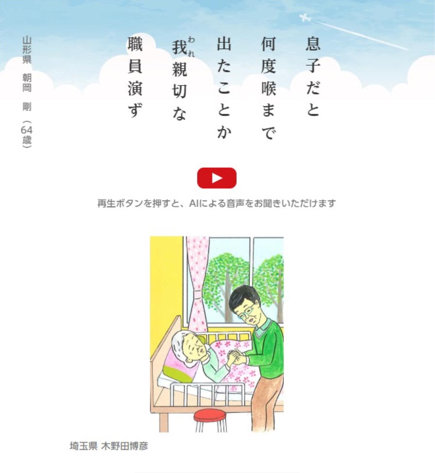 このたび、皆さまからたくさんのご応募をいただきました「新・介護百人一首2025」につきまして、厳正なる選考の結果、入選作品100首が決定いたしました。