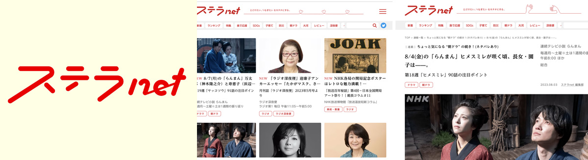 ステラ編集部(NHK番組広報記事の編集 朝ドラ「半分、青い。」、大河ドラマ「麒麟がくる」など)