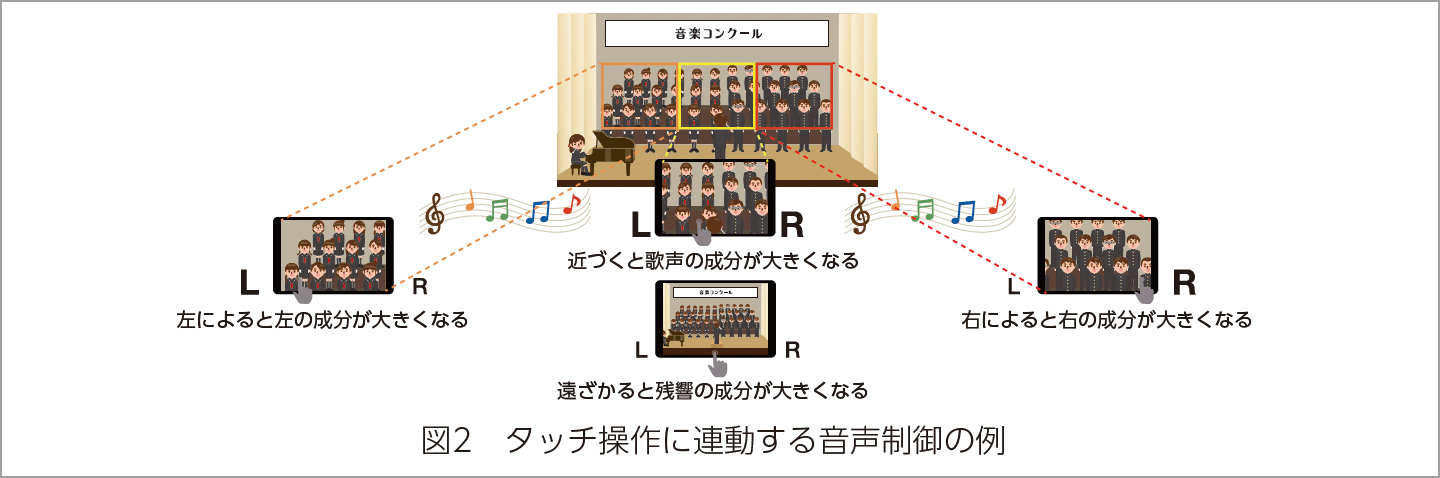 ・動画のズームやパンに連動して、音響空間内の移動を表現する音声制御技術