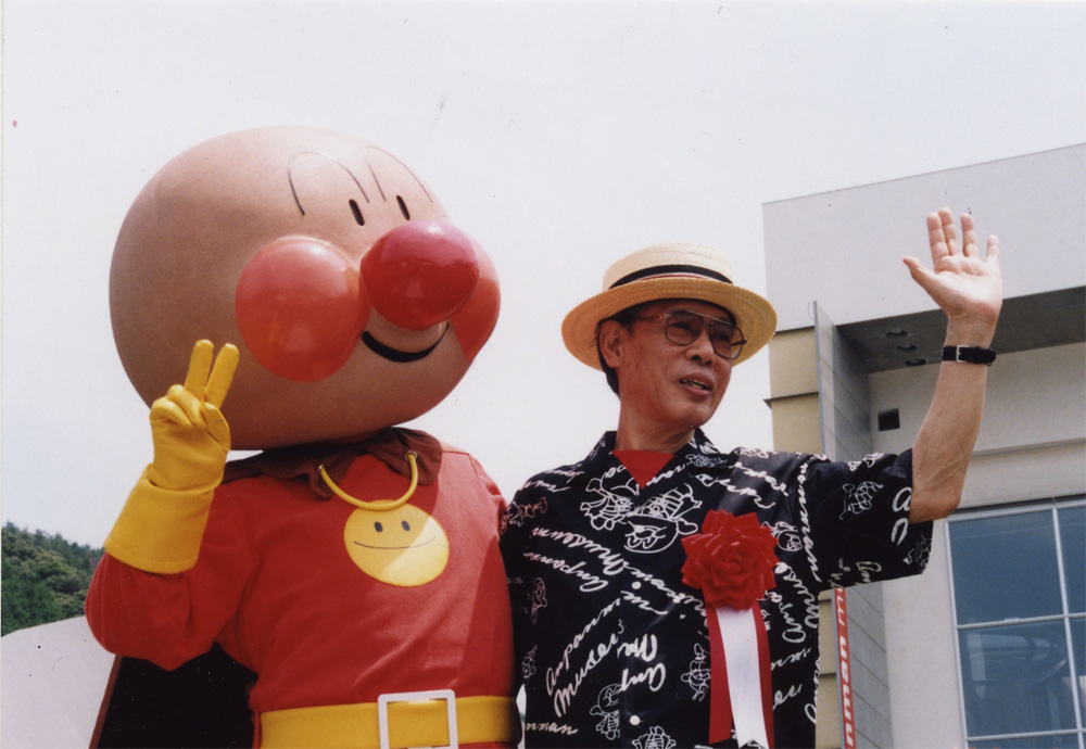 1919年、⾼知県出身(本名:柳瀬嵩)。東京⾼等⼯芸学校⼯芸図案科(現千葉⼤学)卒業後、東京⽥辺製薬宣伝部に⼊社。徴兵され復員後は⾼知新聞社で雑誌編集を担当。1947年上京、三越百貨店宣伝部を経て53年に漫画家として独⽴。舞台美術、作詞、ラジオ・テレビの構成も⼿がける。67年、「ボオ⽒」で週刊朝⽇マンガ賞受賞。73年創刊の雑誌「詩とメルヘン」(サンリオ)の編集⻑を務めた。同年『あんぱんまん』(フレーベル館 ⽉刊絵本「キンダーおはなしえほん」)発表。88年にテレビアニメ「それいけ!アンパンマン」放送開始、国⺠的⼈気を博する。作詞に「⼿のひらを太陽に」(1961)、絵本に『やさしいライオン』(フレーベル館、1975)ほか多数。